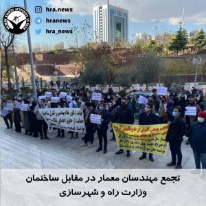 تجمعاتی اعتراضی خواستار رسیدگی به مطالباتشان شدند.به گزارش خبرگزاری هرانا به نقل از معاصر، امروز شنبه ۴ دی ماه ۱۴۰۰، شماری از مهندسان معمار در مقابل ساختمان وزارت راه و شهرسازی واقع در تهران، تجمع اعتراضی برگزار کردند.